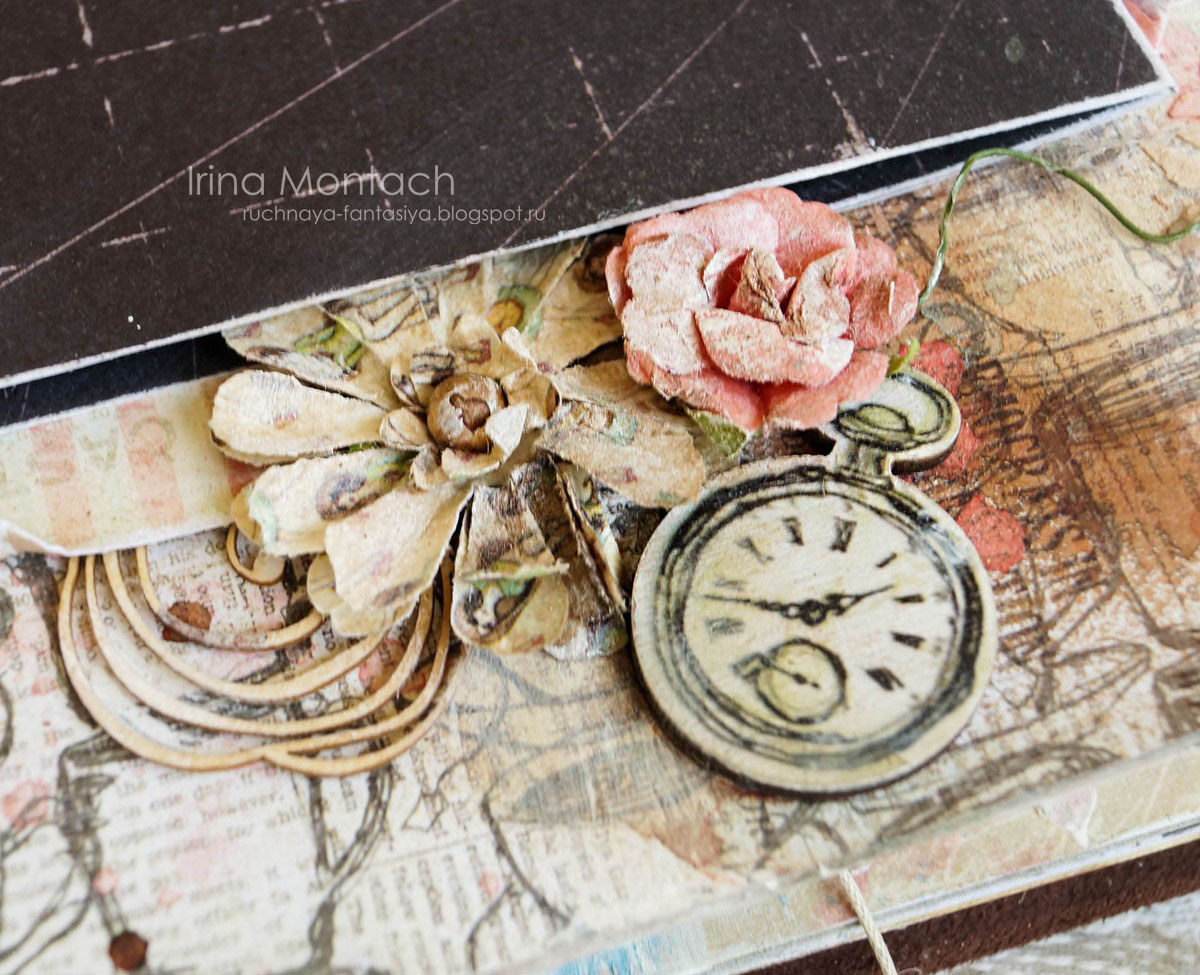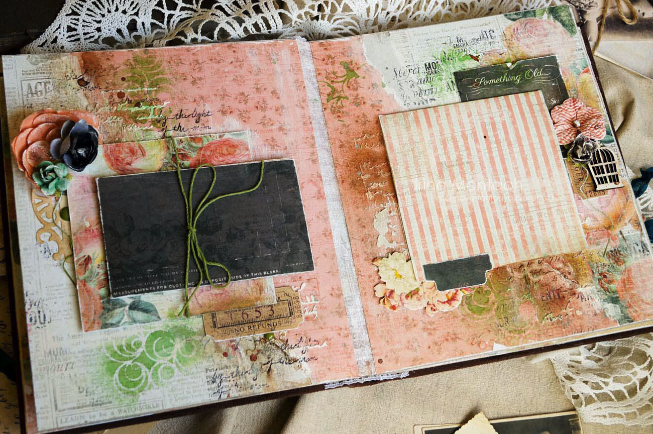 Альбом на пять разворотов, размером 19х23см. Для обложки притащила из дома любимую искусственную замшу...ну нравиться она мне очень))) не наигралась ещё) Правда как оказалось на замшу грунт ложиться не так как х/б и лен, но в принципе вышло не плохо. Вообщем наслаждайтесь....