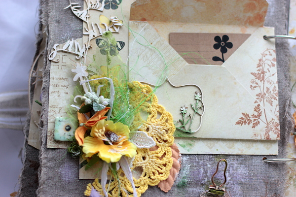 Хотелось сразу сделать альбом немного плоским, и я активно взялась за гортензии, но все равно не смогла пройти мимо объемных веточек и цветов.
