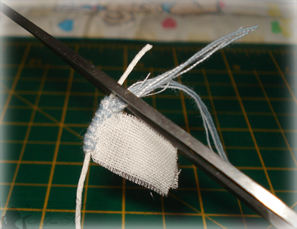 1. Заправляем нитки, отрезаем полоску ткани, по ширине равную толщине готового книжного блока, длиной 5-6 см