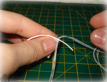 *нитки одного (потолще) или двух (потоньше) цветов (на фото швейные нитки 20 и джинсовые 36)
