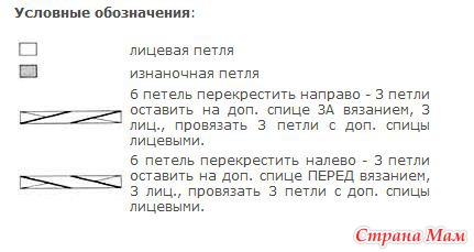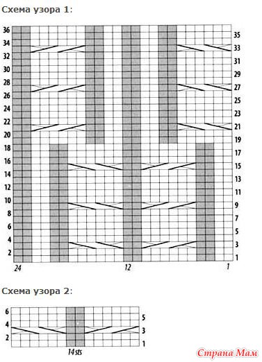 Узор 1: Вязать по схеме 1. На схеме указаны только лицевые ряды, изнаночные ряды вязать как смотрят петли.