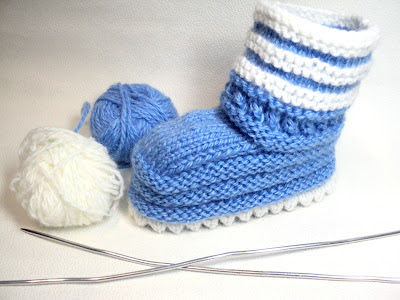 Перейдите на нити основного цвета и вяжите боковую часть пинетки. Здесь открывается простор для вашей фантазии, можно вязать любым узором, я вязала таким:1 ряд:изнаночными петлями по лицевой стороне работы,