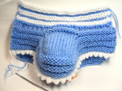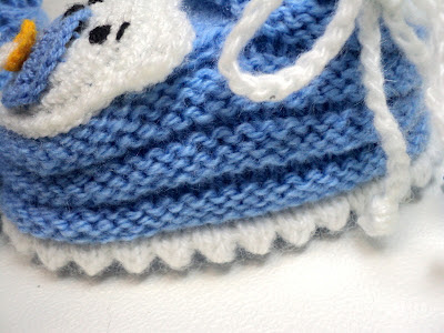 Убавляем петли, пока останется только 9 средних петель и по 13 петель по бокам. Провязываем до конца ряд и вяжем верх пинетки как вашей душе угодно (я продолжила вязать тем же рисунком, что и боковую часть)