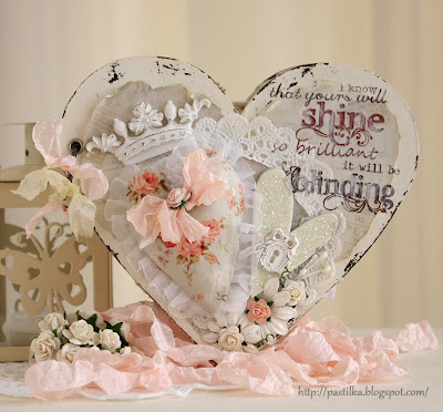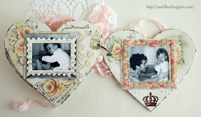 Стиль шебби-шик можно творить из любого предмета и материала создать новую милую вещицу. Так, из сердечка можно сделать рамку-магнит на холодильник или собрать несколько таких рамочек в оригинальный альбомчик.