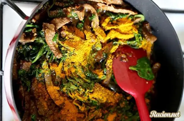При подаче рекомендую гарнировать его зеленым лучком с свежим чили и кинзой.