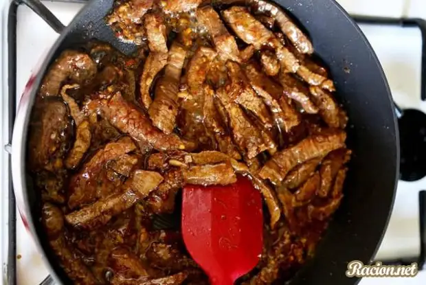 Даем овощам хорошо пропотеть. Затем добавляем ложку томатной пасты ,две ст.л. молотой сладкой паприки, хорошо вымешиваем затем очередь за соевым соусом и половинкой порции острого соуса самбал оелек ( половинка , потому что , когда вы зальете бульоном , проверите на остроту и если не достаточно будет , вы всегда сможете ее добавить), нарезанные соломкой муэр грибы.