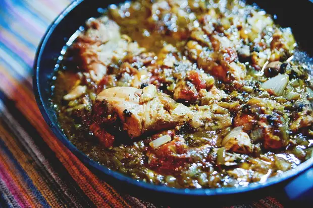 3. Выложить на сковороду куриные бёдра и голени. Пожарить с обеих сторон. Затем переложить курицу в отдельное блюдо.