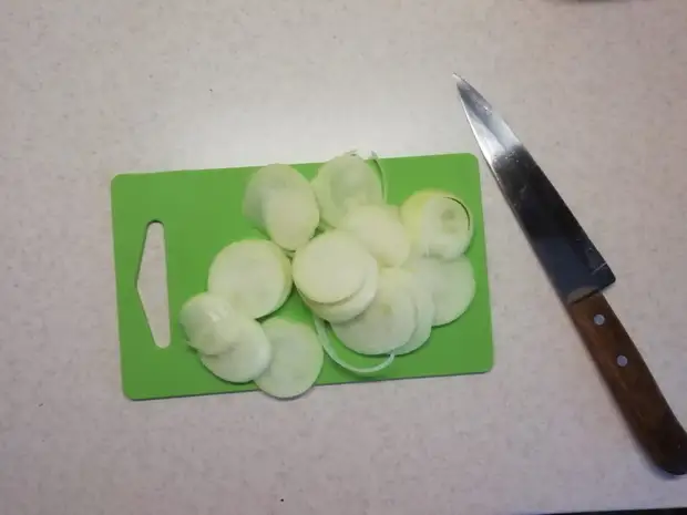 Лук нарезаем мелким кубиком, чеснок пропускаем через специальный пресс, зелень мелко рубим.