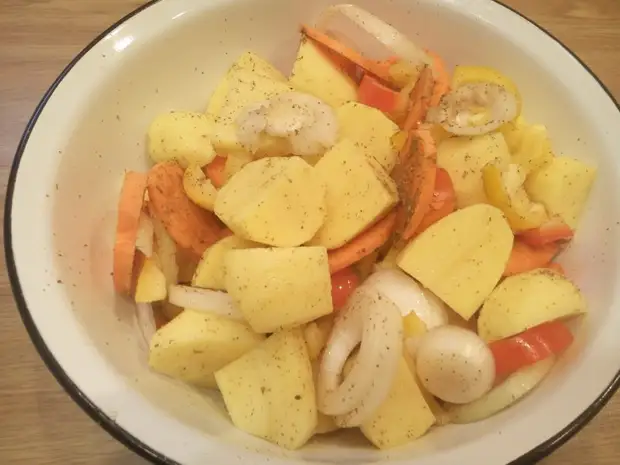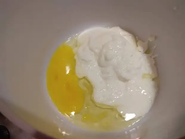 Наливаем винный уксус и хорошо перемешиваем массу.