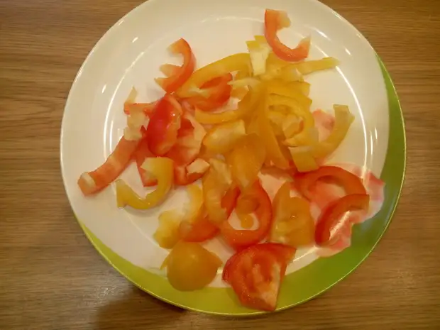 Баклажаны чистим от кожуры и «хвостиков». Нарезаем вдоль тонкими пластинками. Баклажаны солим, оставляем минут на 5-7, затем промываем и обсушиваем.