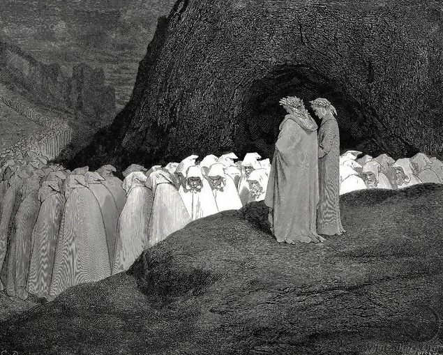 Но еще более дерзко то, что он населяет свои девять кругов не абстрактными безликими страдальцами, как это предполагала бы рядовая готическая образность. В преисподней мучатся исторические персонажи, графы, папы, короли, прелаты, политики, ученые, да просто знакомцы — друзья и недруги, при случае живо обсуждающие и товарищей по вечному страданию, и те земные коллизии, которые они покинули навсегда. Погибшей душе вроде бы и не положено взывать к сочувствию (что толку? ад — не чистилище, «хотящие перейти отсюда к вам не могут, также и оттуда к нам не переходят»), но вспомните, сколько художественных умов увлекались сочувствием хотя бы к тем же Паоло и Франческе. Данте примеряет роль высшего Судии, делает то, что в определенной оптике его самого обрекало бы на страшную кару как кощунника, и это само по себе тоже создает дополнительное напряжение, которое мы в «Аде» ощущаем, даже если его не сознаем.