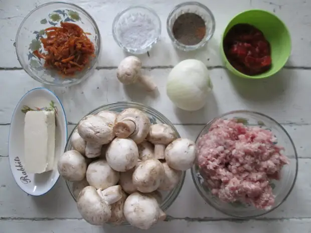 Морковь я тоже предварительно отвариваю. Нарезать морковь пластинками, карбонад крупным кубиком, добавить грибы.