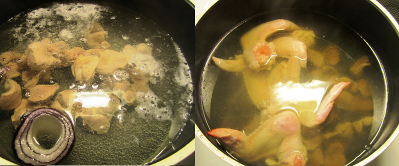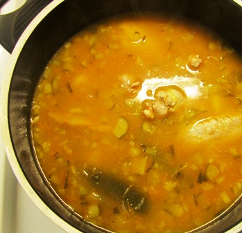 В этот момент закипела вода и я засыпал туда рис. Пропорции стандартные для варки риса, разваривать его сильно не нужно, пусть будет «альдэнтэ», с хрустинкой. Воду подсолил и влил пару столовых ложек растительного масла без запаха.