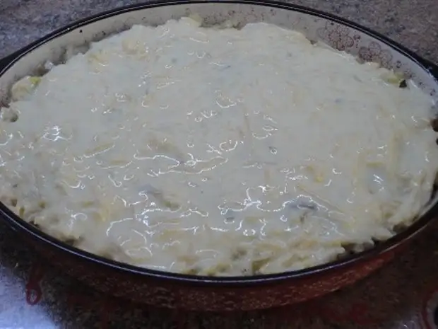 Отварите картошку или запеките до мягкости. Лук измельчите и обжарьте в масле до золотистого цвета.