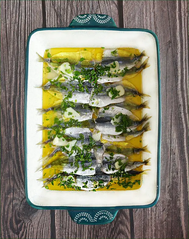 • Заправить смесью винного уксуса (или лимонным соком) и оливкового масла;