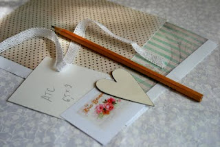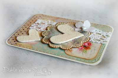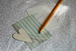 Я планировала использовать сердечки для серии АСТ, поэтому из скрап-бумаги выкроила прямоугольник размера АТС карточки. Примерила шаблон сердечка, обвела в нужном месте.