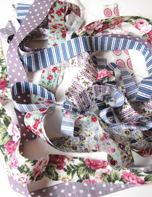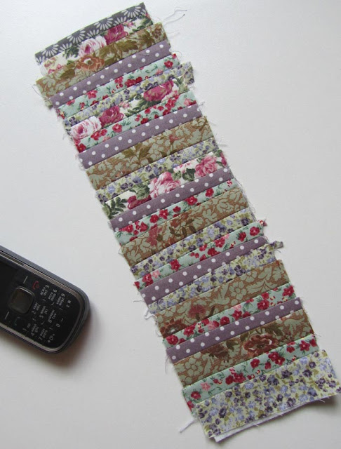 1. Нарежьте выбранные ткани на полоски шириной 1,5-2,5 см. Можно использовать накопившиеся у вас обрезки. У меня они кривые, я специально не стала их выравнивать.