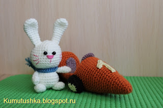 вязаный заяц в морковкомобиле