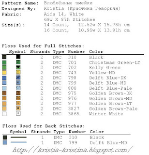 Как и обещала выкладываю ещё одну схему со змейками. На этот раз влюблённая парочка. :)
