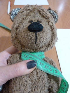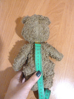 Первая мерка - это длина кофточки. Измеряем ее на середине спины мишки от основания головы до предполагаемой точки низа.