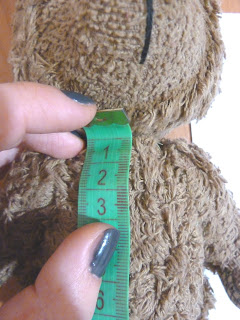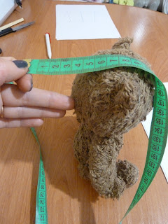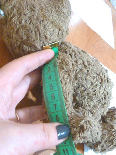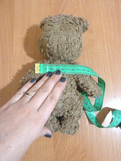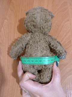 Но мишки - не люди и поэтому пропорции у них могут быть не всегда пропорциональными. Так было и у меня. Мишка оказался пузатеньким ))) То есть перед должен быть немного шире спинки. Для этого делаем следующие мерки и строим выкройку.