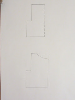 Откладываем горизонтально вниз от плечевого среза. Достраиваем выкройку.