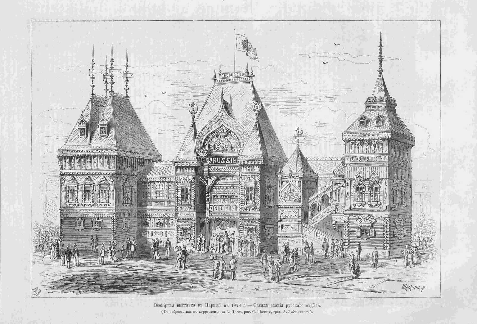 Павильон Российской империи, выполненный в псевдорусском стиле по проекту архитектора Ропета
