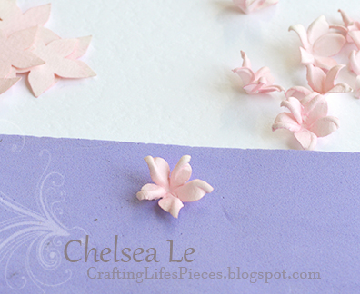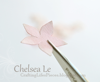 | Punch out the flowers and add color to them if you like. I've water colored mine with a baby pink color. | |