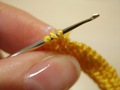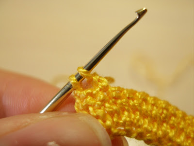Смотрим схему - под третью петлю нам нужно провязать 7 столбиков с накидом. Мы готовы!