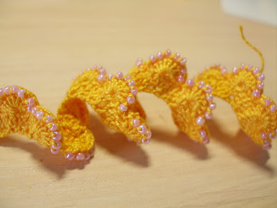 Вторая половина - в каждой 3 ВП провязываем по 2 СТ. С Н, Лента закручивается еще сильнее, этот край пойдет в сердцевину цветка.