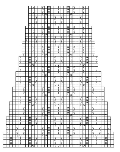 http://knitting-club.blogspot.com/2011/06/matrimonio-bolero.html Схема 1 | Схема 2 | Выкройка | Обвязка крючком Схемы от nabiskit: схема 1 | схема 2 Источник: Matrimonio bolero Дизайнер: fasOLA (2010) Вам потребуется: 100 г пряжи (кашемир); спицы 4.0 мм Описание автора: Ряд 1: лиц Ряд 2 и все четные ряды: изн Ряд 3: 5 лиц *4 лиц, накид, 2 вместе лиц протяжкой, 2 лиц* 6 лиц Ряд 3, 5 и 9: 2 лиц, накид, 2 лиц *3 вместе лиц, 2 лиц, накид, 1 лиц, накид, 2 лиц* 3 вместе лиц, 2 лиц, накид, 2 лиц Ряд 11: 5 лиц * накид, 2 вместе лиц протяжкой, 6 лиц* Ряд 13, 15 и 17: 1 лиц, 2 вместе лиц, 2 лиц, накид* 1 лиц, накид, 2 лиц, 3 вместе лиц, 2 лиц, накид* 1 лиц, накид, 2 лиц, 2 вместе лиц протяжкой, 1 лиц (Повт. между *) Схема от mirvi Примечания к этой схеме: Набрать невидимым набором 99 п (11 x 8 + 11). Убавлять до 96 (12 x 8 листиков) п для рукава. Рукава вязать по кругу - 5 раппортов по вертикали. 5 раппортов для половины спинки. Итого 20 раппортов в целом для болеро. Без обвязки крючком. Проект на Ravelry:Matrimonio bolero