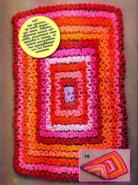 Схема и описание из журнала "Вяжем крючком" № 6 2013 г. Разноцветный коврик связан крючком № 2,5 из остатков пряжи различных ...