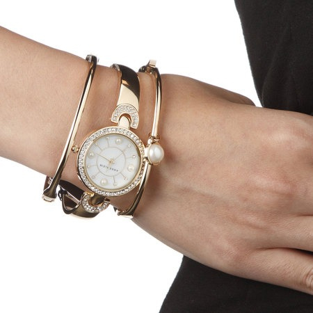 Спокойное сияние металла, переливы кристаллов. Все чинно, благородно, с налетом аристократии. Такой часовой микс можно надеть как со строгим офисным костюмом, так и с вечерним платьем.