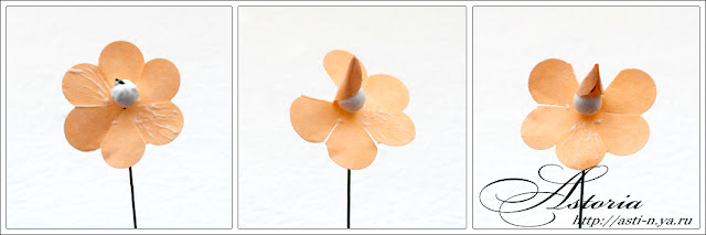 При необходимости нижнюю часть цветка можно приклеить к более плотному материалу.