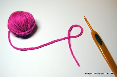 Wrap the working yarn around the hook from behind and pull through the loop on your hook. This is called a chain stitch and is written in a pattern "ch 1".