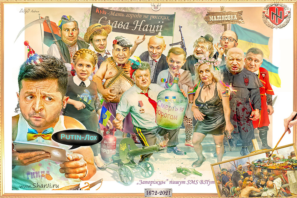 Прежде всего, огромной ответственностью. Разве можно скрыть утончённость, проницательный ум Бориса Джонсона, честный и неподкупный взгляд Петра Порошенко. Выделить, подчеркнуть гордость, независимость, любовь к Франции Эммануэля Макрона.Вовчик Зеленский (фрагмент карикатуры 2019).