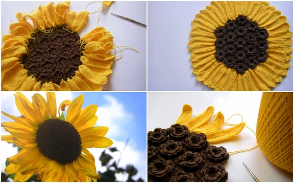 Вяжем из ириса коричневого цвета цветочки, которые пришиваем друг к дружке, формируя группу многогранника.