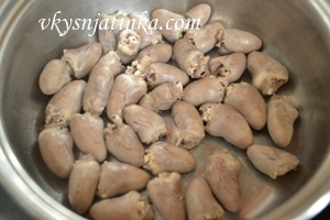 Затем, отбрасываем сердечки на дуршлаг, промываем и ставим вариться в новой воде.