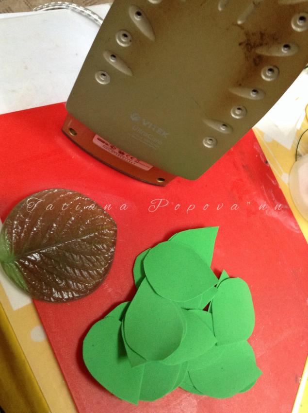 16. Подкрашиваем цветы и листья следующим раствором: четыре чайные ложки быстрорастворимого кофе и 50 гр. горячее воды.