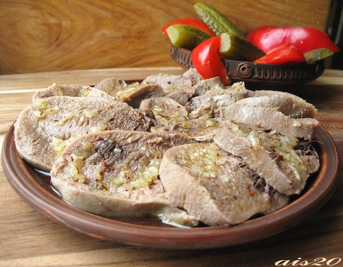 Язык под чесночным соусом |