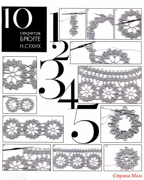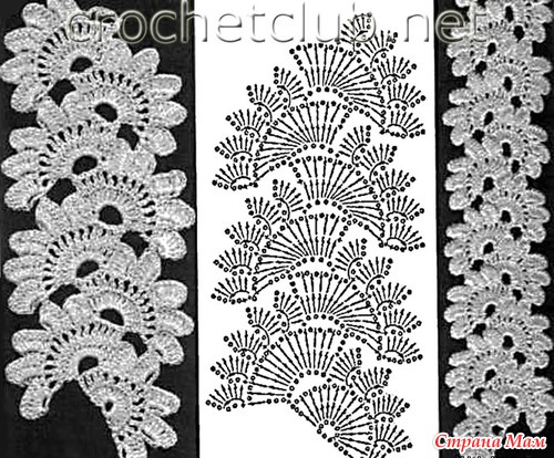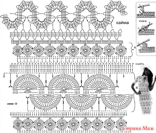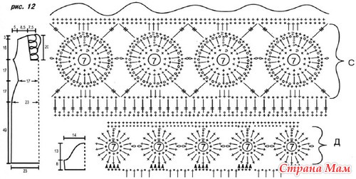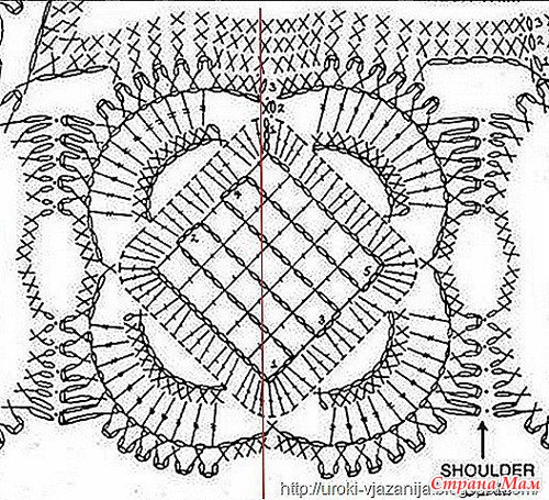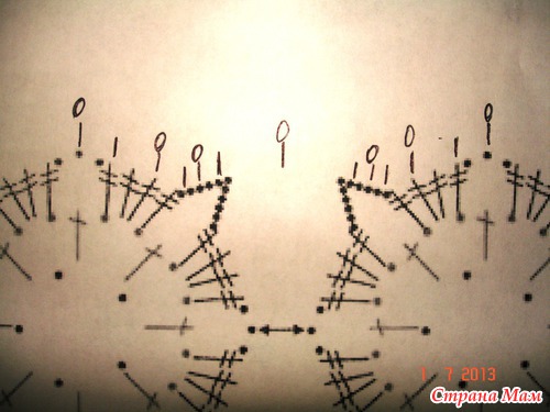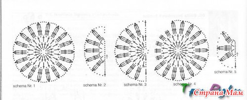 Поясняю - начинаем с левого нижнего мотива в схеме, движемся при вязании второго ряда по стрелочкам.