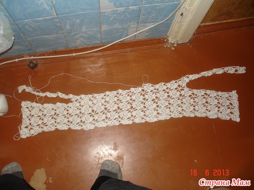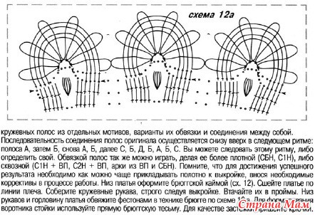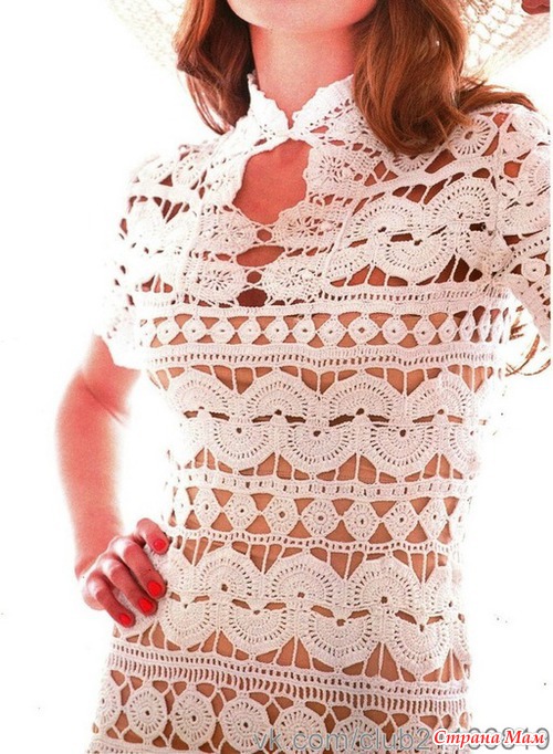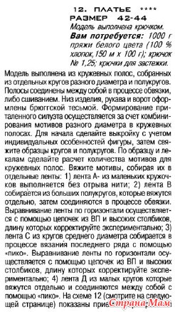 Модель платья взята из Журнала мод №559/2012 г. Платье связано крючком №1.25 из 1000 г пряжи (100% хлопок, 150 м * 100 г). Размер 42-44.