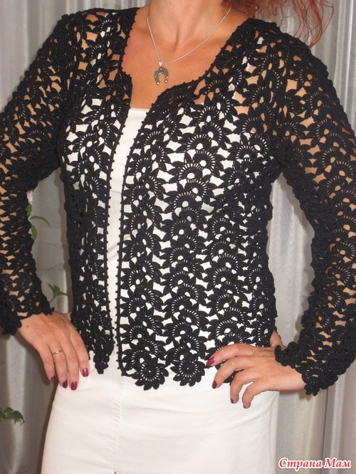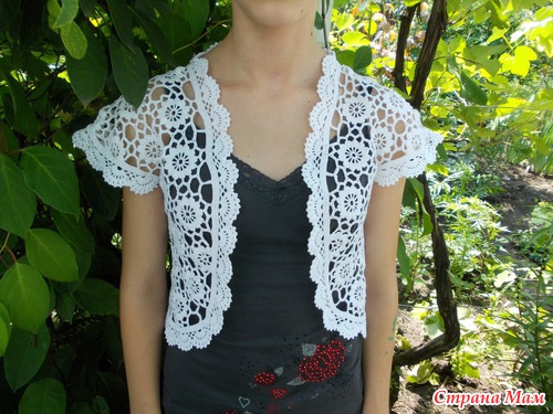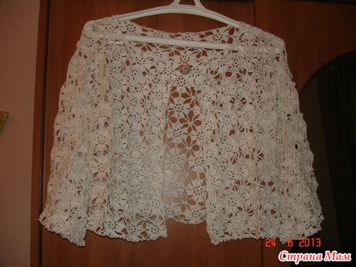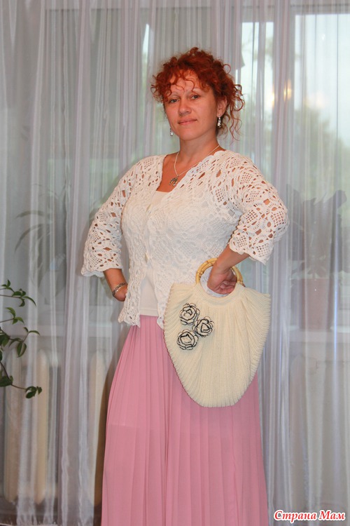 Доброго времени суток уважаемые странамамочки! Давно я не выставляла на ваш суд свои работы. Прошу не судить строго мой белый жакет. Сразу напишу большое спасибо Ирине в одноклассниках http://www.odnoklassniki.ru/profile/495850095004/album/402685522332 - это её страничка со схемами, так как идею и схему я брала у неё. Пряжу я брала "COCO" индийский хлопок, ушло у меня около 450 гр. крючок 1.75 кловер.