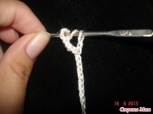 Теперь нам нужно начать 1-й ряд мотива, для этого вместо вп мы делаем соед. столбики по цепочке из воздушных петель