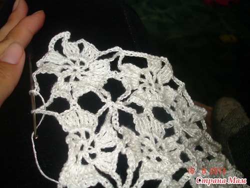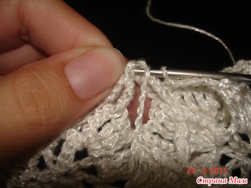 Теперь мы должны перейти на вязание следующего мотива. Для этого мы должны с помощью вп как бы "перейти" в центральную его часть -