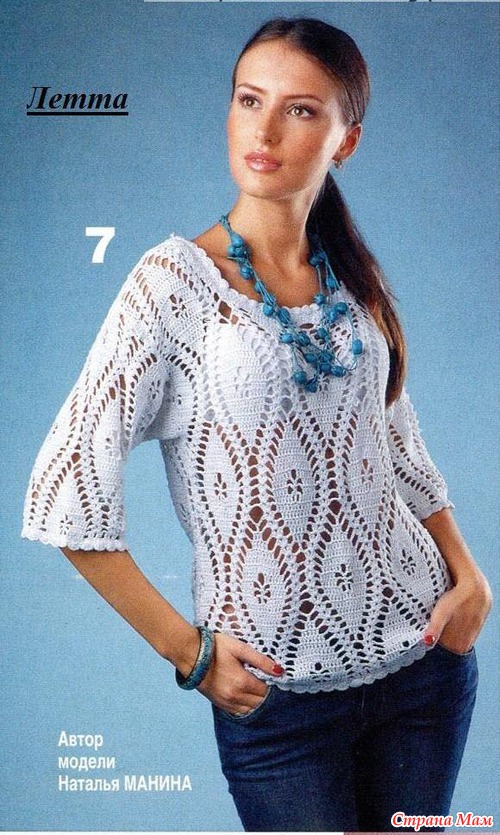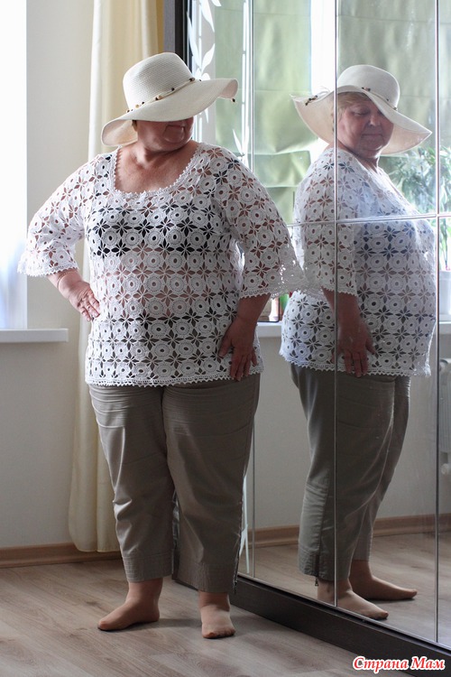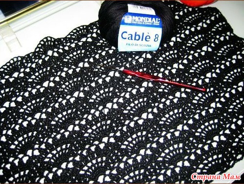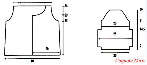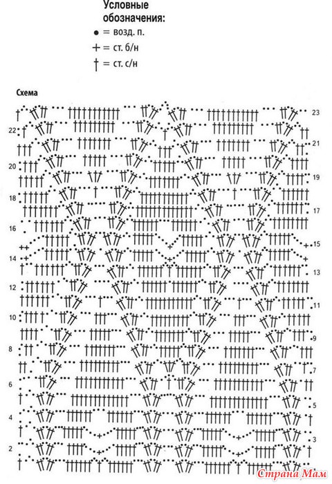 Прод. вяз. ст. с/н и в 22-м р. уб. с обеих стор. 2 п. (= провязать 3 ст. с/н вм.) = 39 ст. с/н. Далее во всех р. уб. с каждой crop, по 1 п. (= провязывать 2 ст. с/н вм.). В 30 н 31-м р. уб. с каждой стор. по 2 п. = 17 п. и закончить работу.