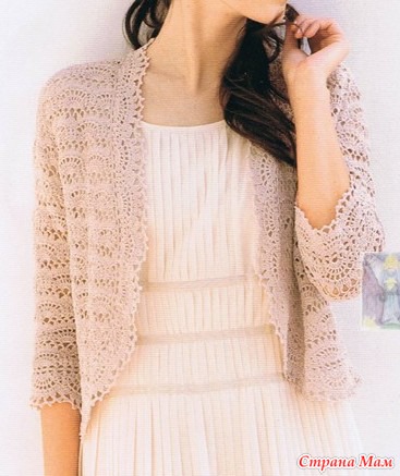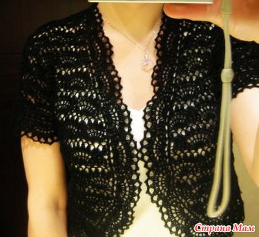 Сам жакетик связан из микрофибры (Diva silk effect 100% микрофибра - акрил. Вес: 100 г. Длина: 350 м) крючок 2.5. Очень приятная ниточка, вяжется легко, полотно получается шелковистое и приятное на ощупь. Единственно, желательно сразу ниточку смотать в клубочек - так удобнее, по крайней мере мне так показалось