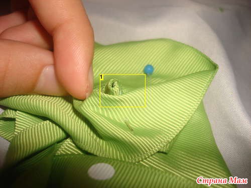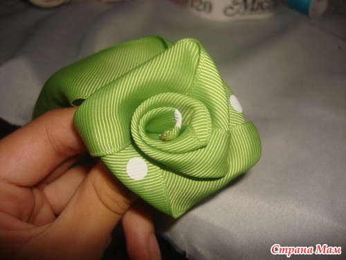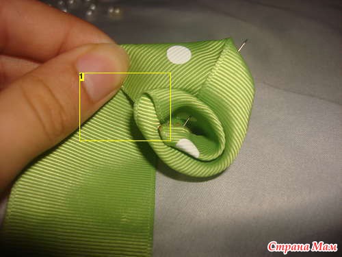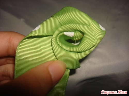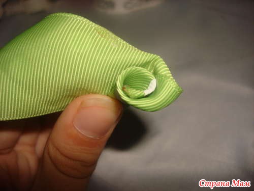 2. Затем с помощью портновской иголочки сдвигаем спираль к склеиному кончику рулона и закрепляем клеем. Даем высохнуть.