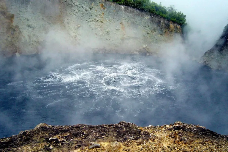 Если вы думали, что ад — это метафора, добро пожаловать на Карибы. Здесь есть озеро, которое бурлит без огня. Реально кипит — 92 градуса, пузыри, пар и запах серы. Учёные спорят, туристы потеют, а местные гиды варят яйца в горячих ручьях и ржут: «Здесь даже вода злится». За 200 лет это озеро дважды исчезало и возвращалось.