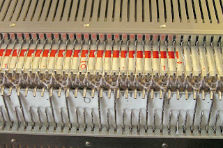 Текст автора: "Умная мысля приходит опосля! Вместо того, чтоб до дрожи в руках перекрещивать деккером петли в косичках при вязании платья - сарафана, нужно было просто подумать мозгом и применить имитирующий эти жгутики узор. И я на него таки наткнулась, когда уже все связала. Если изменить схему расположения игл на передней игольнице, а на задней- выполнять чулочную вязку, можно получить эффект жгутиков. Надо только последовательно чередовать сдвиг игольницы сразу на 2 шага - с 5 на 7 позицию и обратно. Узор вяжется очень быстро и выглядит эффектно, правда, не так стильно, как косички.